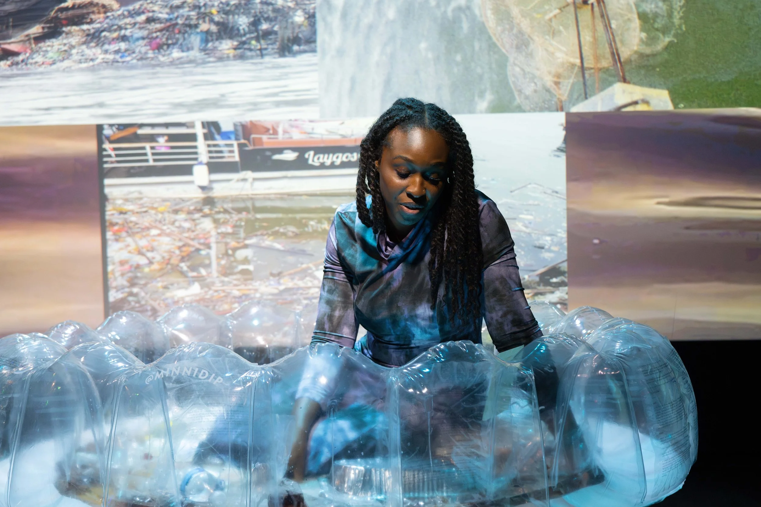 Protest Grammars is many things, a performance of such conceptual depth that I’m still trying to go beyond its surface. It is an exploration on writing the unwritable: how to write in water (“is our trash, then, how we write in water?”) and how not to write in water (“how to leave the water alone”). It is a question on how to move away from colonial grammars and create another. It wonders where do we begin when we have no single source? It reflects on the 1861 Lagos Treaty of Cession, codifying body as territory. It is about protest, “a wave of bodies floods the streets.” Maryam draws comparisons in grammar, in syntax, to protest and water: when both stagnate, they are tolerated; when they break the banks, crisis. It is about protest asking us to dream. But when does this dream end? Or as Maryam asks: “When does a protest end?”