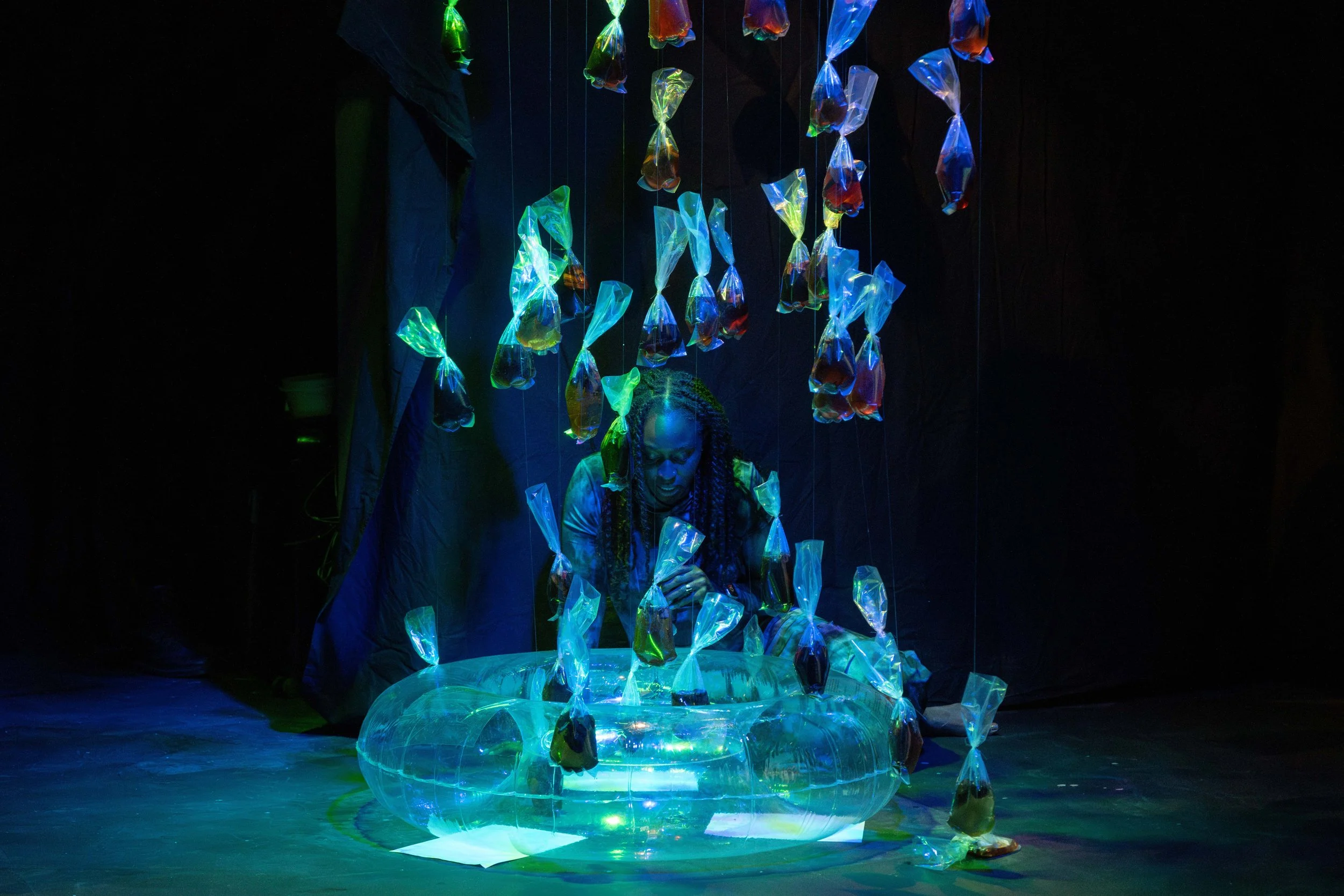 As Maryam continues, we understand that before colonialists claimed the lagoon, and before they named it lagoon, swamp, wasteland, “nothing more than a sandbank,” this body was – is! – a set of relations. Habitat and home, school and ecosystem, spirits and archivist, those who are, who were, who will be. It is Osa, deity of the lagoon, and Olokun, deity of the ocean. It is a transitional abyss where, as Wole Soyinka puts it, “artists and ritual performers must enter.”